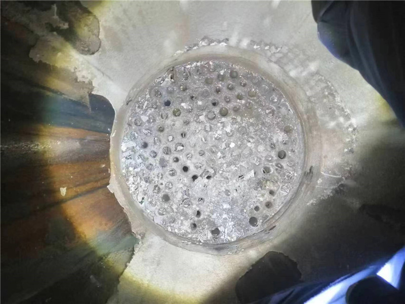2022年8月12日河南都市機(jī)械設(shè)備有限公司馮經(jīng)理坐鎮(zhèn)指揮,技術(shù)員喬俊陽、都紅植積極配合,與新疆哈密市,新疆湖晟新材料科技有限公司張總,針對兩臺熱水缶,(廢水處理蒸發(fā)器)多年沒有解決了的結(jié)垢堅硬堵死的管子內(nèi)徑38毫米長度6米難題,使用特別加長的加粗軟軸,進(jìn)行一步到位的疏通清理,過去奔著報廢處理的設(shè)備又重新煥發(fā)生機(jī),即節(jié)約資金損耗又減少了工作時間,大大的為企業(yè)提高了效益,深受化工廠化肥廠鋼廠電廠制氧廠水泥廠糠醛廠青睞和歡迎!